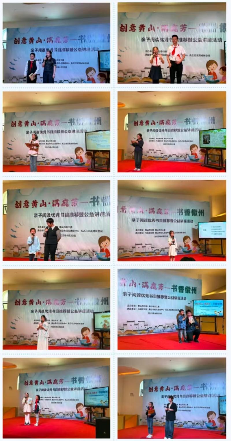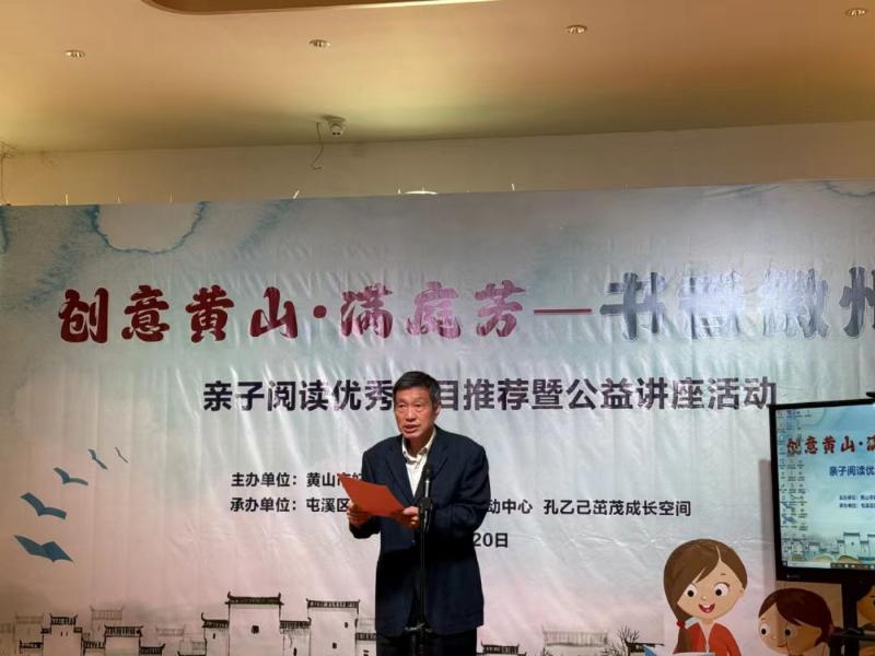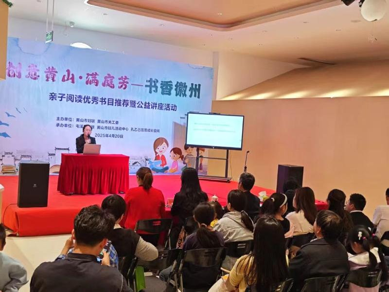 为深入学习宣传贯彻党的二十大精神,贯彻落实习近平总书记关于注重家庭家教家风建设的重要论述,充分发挥亲子阅读在家庭教育中的独特作用,引导广大家庭营造良好读书氛围,创设浓郁书香环境,养成良好的读书习惯,促进父母与孩子共同成长,4月20日上午,市妇联、市关工委联合在孔乙己茁茂成长空间举办“创意黄山·满庭芳——书香徽州”亲子阅读优秀书目推荐暨公益讲座活动。