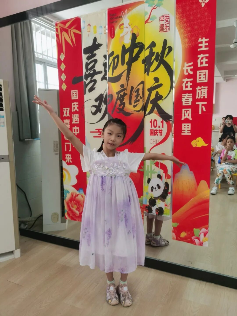 活动现场,部分小朋友身着汉服,在小伙伴的陪伴下,于镜头前留下一张张童真的笑脸,将团圆、祝福祖国的美好寓意永久定格。