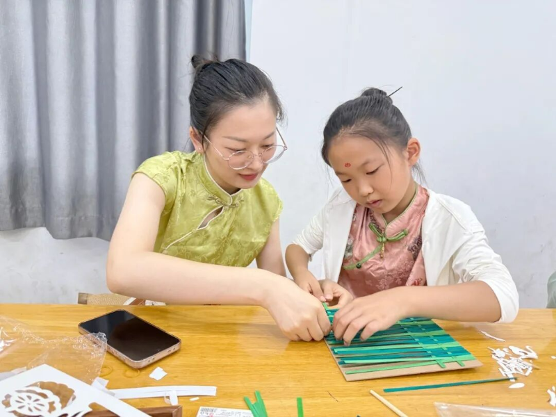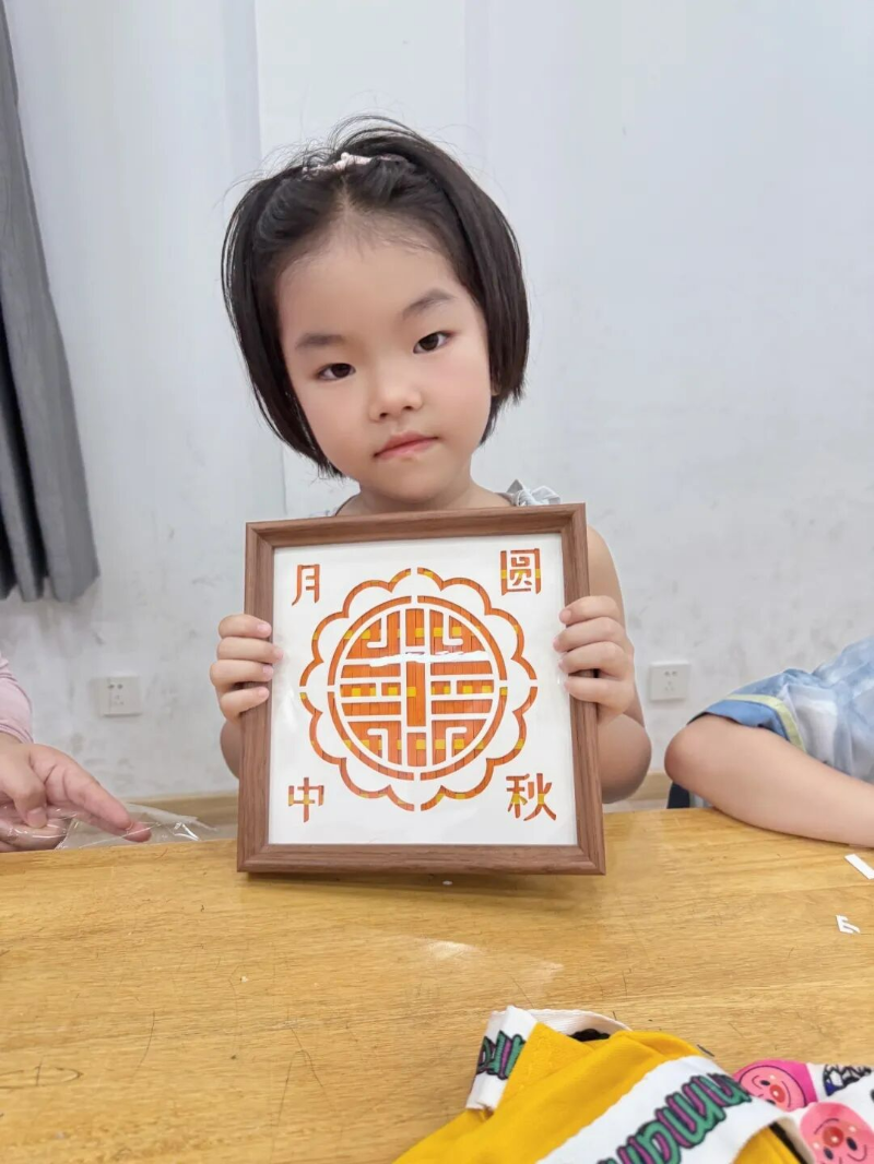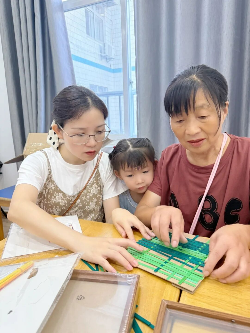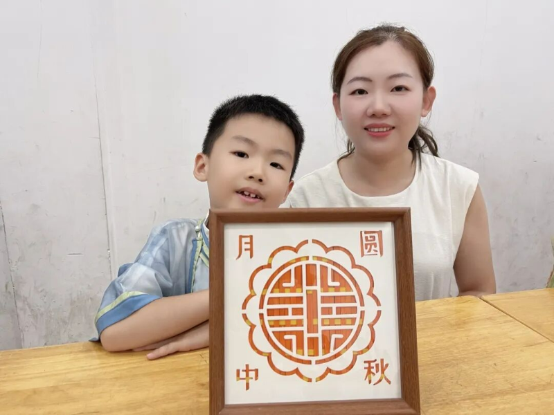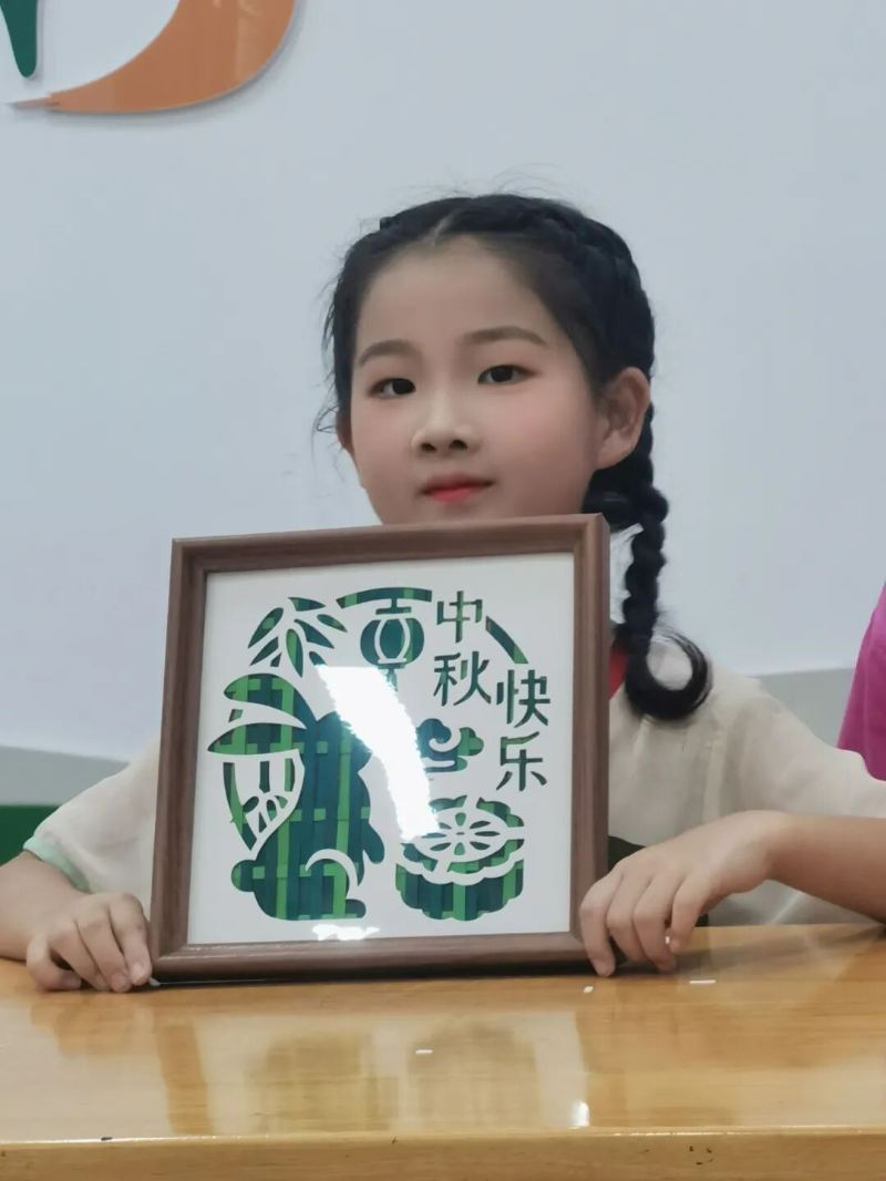 编织画DIY环节最能考验亲子之间的默契和动手能力啦!大家低头挑选竹条、细心编织,不一会儿,兼具非遗韵味与中秋特色的编织画纷纷“完工”。