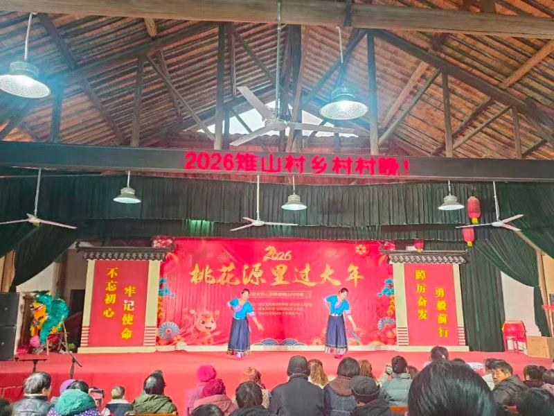 2月10日下午,黟县宏村镇雉山村文化大礼堂暖意融融、欢声阵阵,2026年桃花源里过大年——雉山村村晚温情上演。这场由村民自编自导、自演自赏的新春盛宴,处处可见巾帼身影、儿童笑颜,以乡土文艺传家风、聚民心、展新风,奏响马年新春团结奋进、和美向善的欢乐乐章。