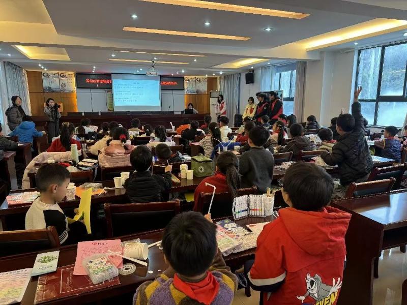 在“变废为宝”手工环节,学生们在大展身手的同时,体会资源循环利用的乐趣。他们利用纸杯等废旧物品,制作出一件件随风摇曳的风铃和五彩斑斓的风车。